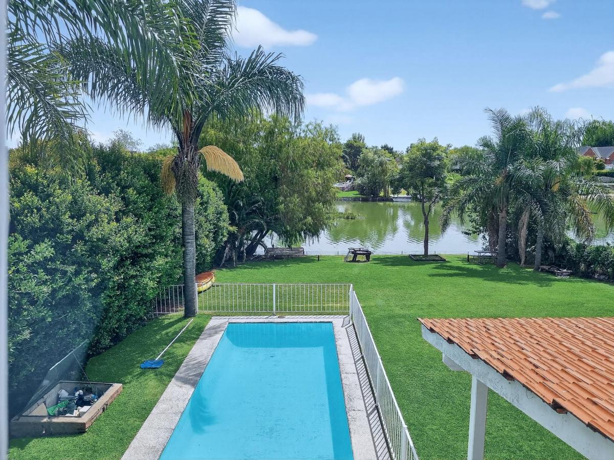 Exterior: Jardín con pileta. Galeria. Muelle. Parrilla. Riego.